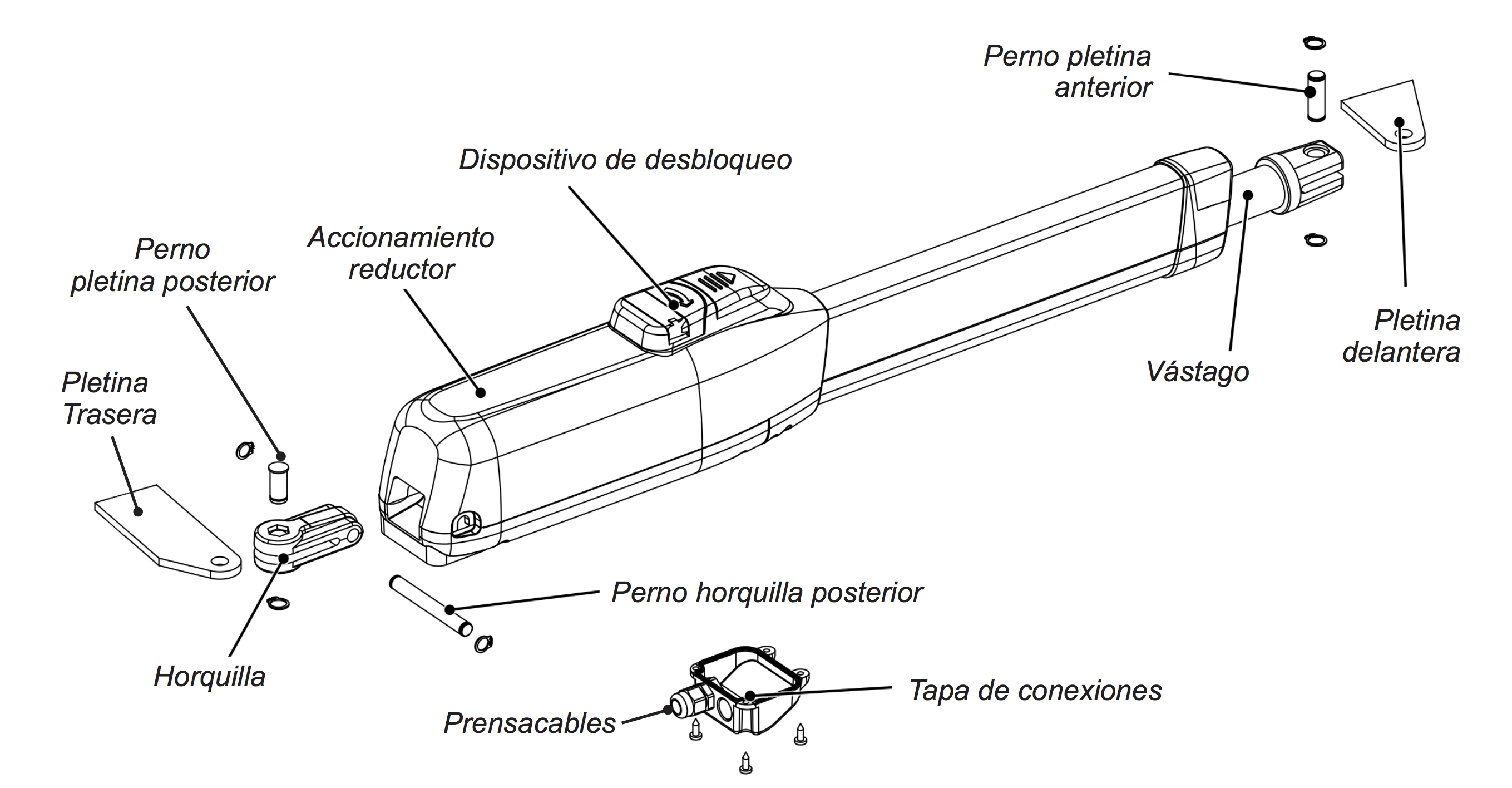 - Desbloqueo protegido con cerradura que permite el movimiento manual de la hoja sin alimentación eléctrica.