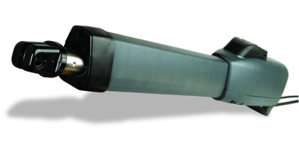Accionamiento electromecánico con finales de carrera eléctricos para hojas de hasta 4 metros con un desbloqueo protegido con cerradura que permite el movimiento manual de la hoja sin alimentación eléctrica.