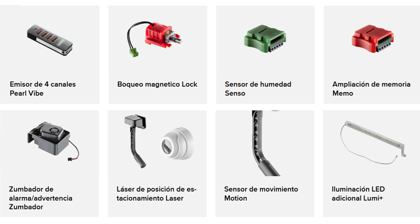 Dispone de numerosos accesorios para ampliar sus funciones, como por ejemplo el accesorio LASER que ayuda al posicionamiento del vehículo en el garaje.