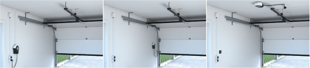 Estos automatismos abarcan puertas seccionales, puertas suspendidas, puertas basculantes, puertas abatibles, puertas seccionales laterales y puertas de apertura lateral.